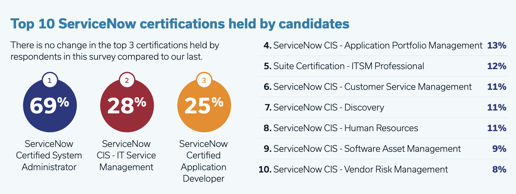 70% of hiring managers believe that a skills gap in the ServiceNow community is a prominent issue, and 51% revealed that finding the right talent – and the time it takes to do so – is the biggest challenge they face in overcoming the skills gap.