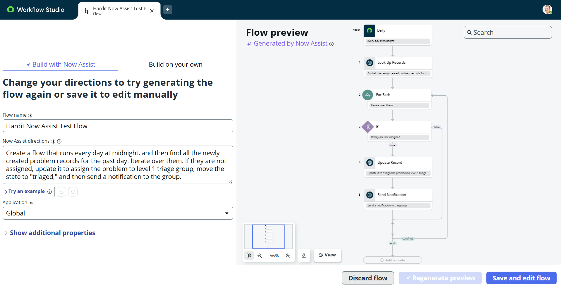 Currently, you can give a prompt directly in the description field while creating a new flow. Based on that, Now Assist intelligently creates the structure of your flow – including triggers, actions, and logical flow.