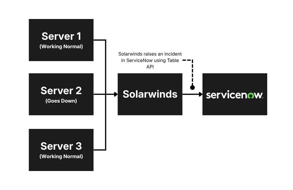 In a couple of my projects, we had exposed the Incident table API to multiple third-party monitoring tools, so that they can create incidents in our ServiceNow instance automatically. One of the tools where we exposed the Incident API was SolarWinds. The SolarWinds tool monitors the performance and availability of the servers in real time, and if the server goes down or its CPU utilization goes above 90%, it automatically raises an incident in ServiceNow.
